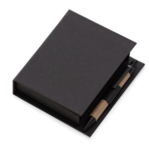 Descrição: Bloco de anotações ecológico com caneta e autoadesivo. Bloco em material kraft, possui cinco blocos autoadesivos coloridos com aproximadamente 20 folhas cada, bloco amarelo com aproximadamente 25 folhas e bloco branco com aproximadamente 120 fo