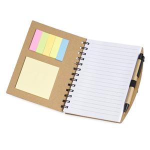 Descrição: Caderneta em papelão rígido com caneta. Possui 6 blocos de autoadesivos com aproximadamente 21 folhas e bloco pautado com aproximadamente 70 folhas. Caneta de papelão com detalhes plástico, carga esferográfica azul e acionamento por clique.