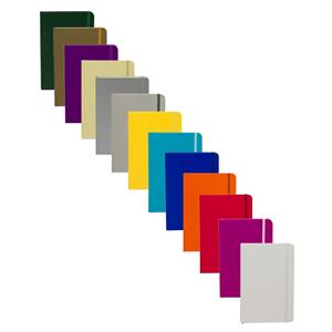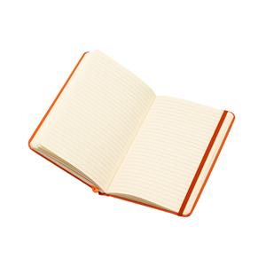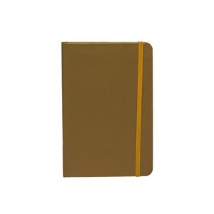 Descrição: Caderneta de papel couchê, contém aproximadamente 72 folhas amarelas com pauta e 16 folhas sem pauta, marcador de página em cetim, elástico para lacre e compartimento em papel para documentos ou anotações.