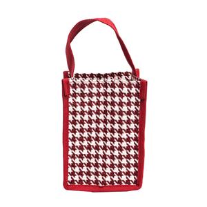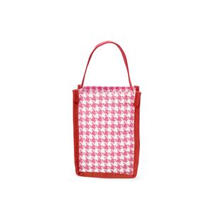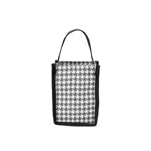 Descrição: A nossa bolsa de mão estampada é a combinação perfeita de elegância e praticidade. Feita em poliéster, com um charmoso padrão pied-de-poule, ela traz um toque clássico e sofisticado. Funcional, é ideal para levar aqueles itens que podem facilme