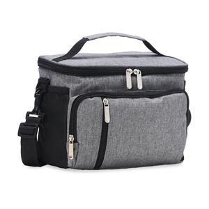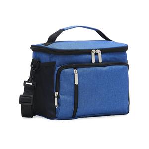 Descrição: Bolsa térmica de poliéster com três compartimentos, capacidade de 9 litros. A bolsa possui revestimento térmico em PEVA atóxico com costura soldada (não vaza), alça de mão, bolsos laterais telados e acompanha alça transversal.Altura : 21 c