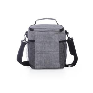 Descrição: Bolsa térmica 12 litros de material poliéster com detalhes em nylon. Abertura superior, possui bolso frontal, dois bolsos de rede nas laterais, fivelas nas laterais para utilização/encaixe da alça de ombro e alça superior.Altura : 26,5 cm<
