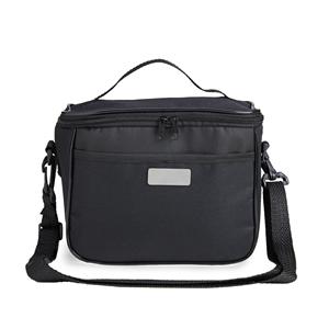 Descrição: Bolsa térmica 6 litros com bolsos externos e alça de mão em nylon, contém bolso frontal aberto e bolso traseiro com zíper. Acompanha plaquinha metálica e alça transversal regulável com mosquetões para encaixe nas fivelas laterais da bolsa.