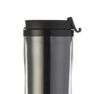 Descrição: Copo plástico 350ml porta foto. Possui tampa plástica com “alavanca” para abrir/fechar compartimento para beber. Copo preto em pvc, basta rosqueá-lo para tirar da base acrílica. Copo acrílico com o fundo externo emborrachado. Para colocar a fot