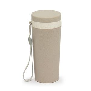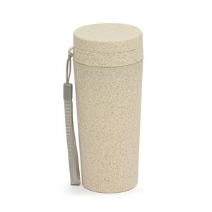 Descrição: Copo fibra de bambu 350ml com parede dupla e alça. Copo produzido em Polipropileno livre de BPA, possui uma tampa de vedação rosqueável e alça de nylon (removível) para transporte. Conserva a temperatura interna durante um período de 1 à 2 hora