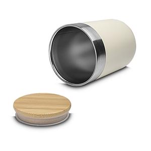 Descrição: Bebidas geladas por mais tempo neste copo térmico, com capacidade de 300ml, feito em inox, com parede dupla e tampa de bambu que possui um anel de silicone para vedação. Seu design e pintura fosca são o toque de modernidade que você procura.