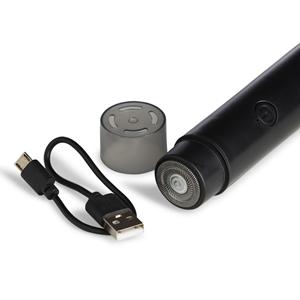 Descrição: Aparador de Barba elétrico recarregável. Acompanha cabo USB Tipo-C e escovinha para limpeza.