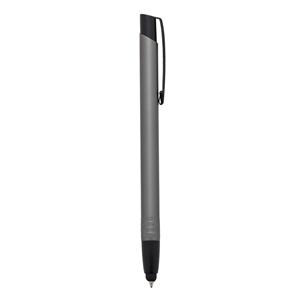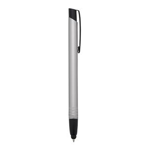 Descrição: Caneta metálica com ponteira touch screen, carga esferográfica azul e acionamento por clique.