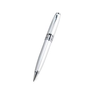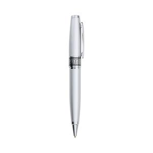 Descrição: Caneta metálica, acionamento por rotação e carga esferográfica azul 1.0mm.