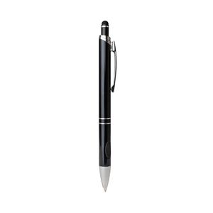 Descrição: Caneta metálica com touchscreen, com detalhe emborrachado na parte inferior, carga esferográfica azul de 1.0 mm e acionamento por clique.