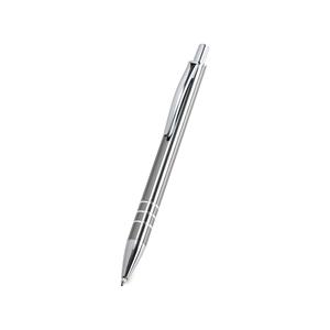 Descrição: Caneta metálica, acionamento por clique e carga esferográfica azul 1.0mm.