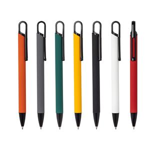 Descrição: Caneta metálica com acabamento similar à borracha, carga esferográfica azul 1.0mm e acionamento por clique.