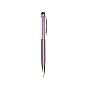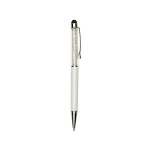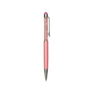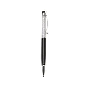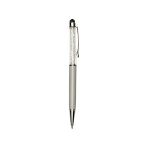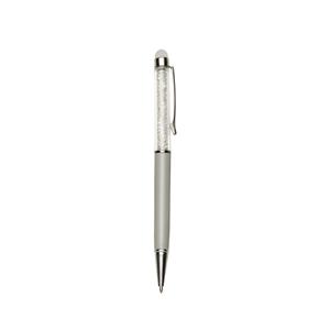 Descrição: Caneta metálica com touch screen e detalhes em cristal, carga esferográfica azul e acionamento por rotação.