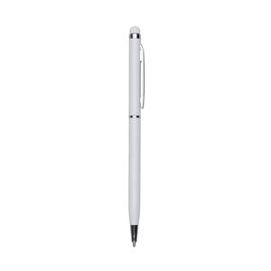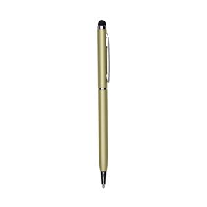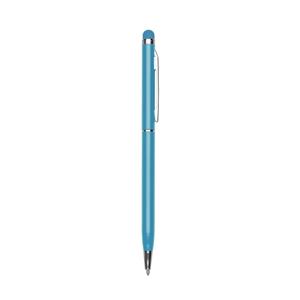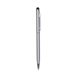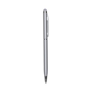 Descrição: Caneta metálica com touch screen, carga esferográfica azul e acionamento por rotação.