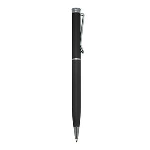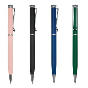 Descrição: Caneta metálica com carga esferográfica azul e acionamento por rotação.