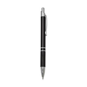 Descrição: Caneta metálica com carga esferográfica azul e acionamento por clique.