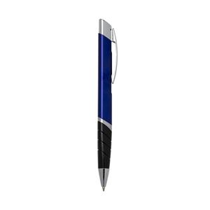 Descrição: Caneta metálica triangular com carga esferográfica azul e acionamento por clique.