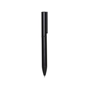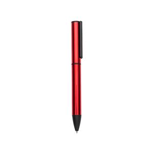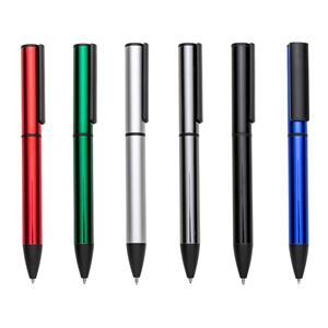 Descrição: Caneta metálica com carga esferográfica azul e acionamento por rotação.