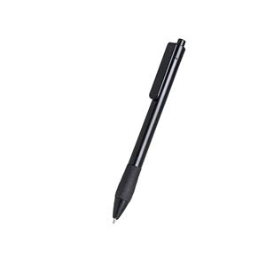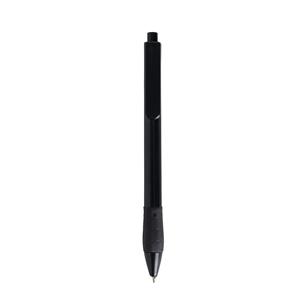 Descrição: Caneta plástica com detalhe emborrachado, carga esferográfica azul e acionamento por clique.