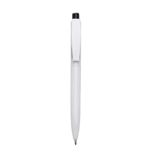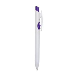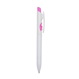 Descrição: Caneta plástica com carga esferográfica azul e acionamento por clique.