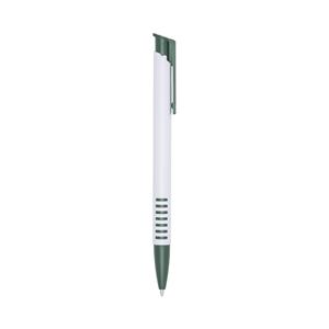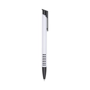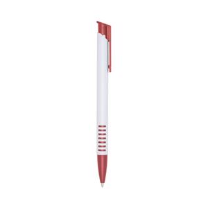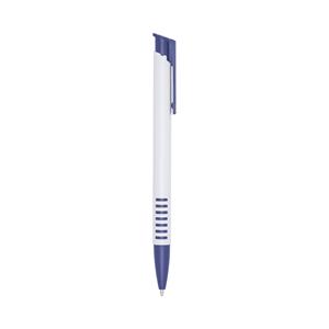 Descrição: Caneta plástica com carga esferográfica azul e acionamento por clique.