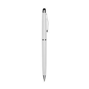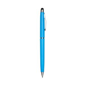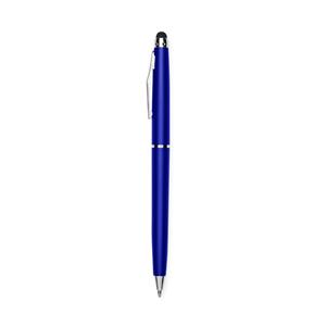 Descrição: Caneta plástica touch screen com acionamento por rotação e carga esferográfica azul 1mm.