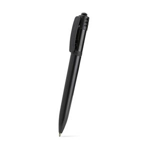 Descrição: Caneta plástica com carga esferográfica azul e acionamento por clique.