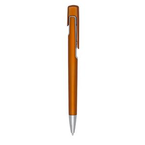 Descrição: Caneta plástica com carga esferográfica azul e acionamento por clique.