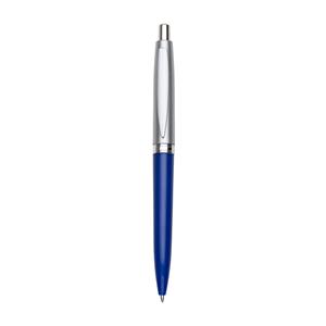 Descrição: Caneta plástica com carga esferográfica azul e acionamento por clique.