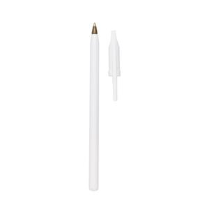 Descrição: Caneta plástica com tampa. Carga esferográfica azul.