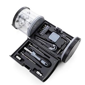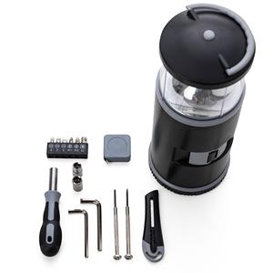 Descrição: Lanterna LED com Kit Ferramentas 15 peças, o kit contém: Mini chave de fenda, Mini chave philips, Cabo emborrachado para encaixe de ponta de chave de fenda e chave philips, 3 pontas de chave de fenda, 2 pontas de chave philips, 2 chaves hexagon