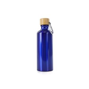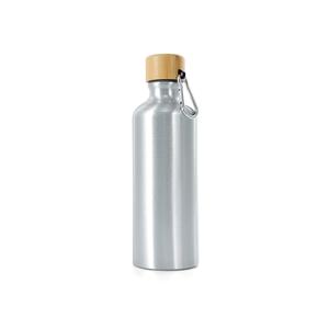 Descrição: Garrafa de alumínio com capacidade de 500ml. Possui tampa de bambu e acompanha mosquetão de alumínio.