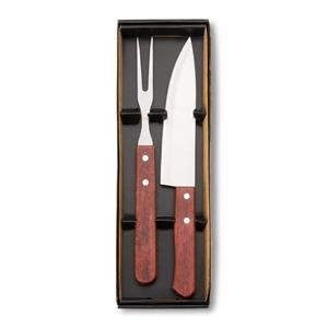 Descrição: Aproveite seus momentos de churrasco com o Kit Churrasco 2 Peças. Este conjunto vem em um estojo de papel kraft. O kit inclui uma faca de 7 polegadas e um garfo, ambos em inox com cabos de madeira. Um churrasco de respeito merece utensílios de
