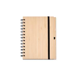 Descrição: Kit composto por 3 peças: sendo uma caderneta de bambu com capa dura, contendo aproximadamente 70 folhas brancas pautadas, uma caneta de bambu com clipe metálico e um chaveiro de bambu com detalhe em metal. Item perfeito para quem busca elegânc