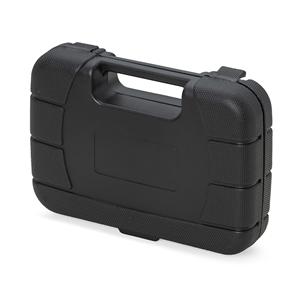 Descrição: Kit ferramenta 8 peças em estojo plástico. Maleta plástica com detalhe retangular no centro frontal e verso liso, possui texturização no estojo e duas travas superiores. Acompanha: fita isolante, martelo, alicate, chave Philips, chave teste, ch
