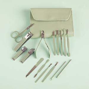 Descrição: Kit manicure 16 peças em estojo de couro sintético estilo envelope, contém: tesoura, alicate de cutícula, pinça, 3 cortadores de unha, lixa, 2 bisturis, raspador, empurrador de cutícula, removedor de cutícula, espátula dupla para limpeza das un