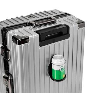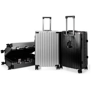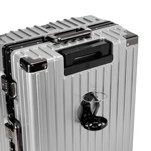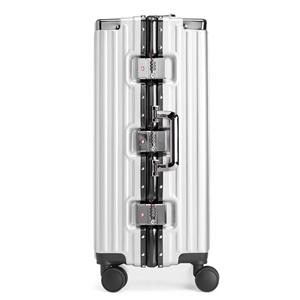 Descrição: Mala de viagem 78 litros feita em plástico com acabamento em alumínio, contém cadeado numérico TSA. Compartimentos internos com bolso telado, bolso plástico para itens molhados e cinta compressora para roupas. A mala possui duas alças de mãos,