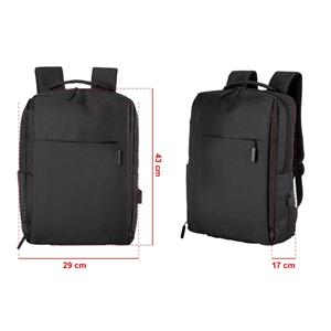 Descrição: Mochila de nylon 21 litros com três compartimentos, sendo o principal com bolso para notebook 15,6. Com divisórias internas para acessórios, a mochila possui bolso lateral e suporte externo usb.
