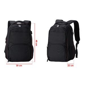 Descrição: Mochila de poliéster 30 litros com seis compartimentos, sendo o principal com bolso para notebook 15,6 e tablet 12,4. Com divisórias internas para acessórios e Porta-Chave, a mochila possui adaptador USB externo, bolsos laterais telados, duas a