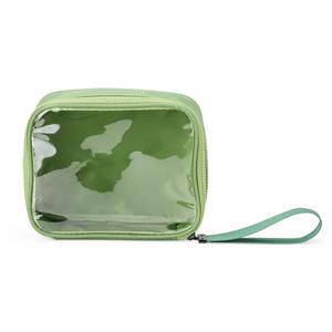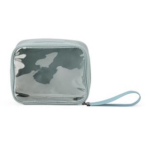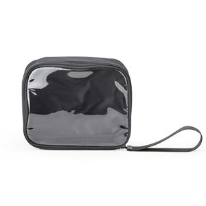 Descrição: Nécessaire confeccionada em nylon, com frente em visor transparente, fechamento por zíper e alça superior. Inclui também uma alça de transporte em nylon.