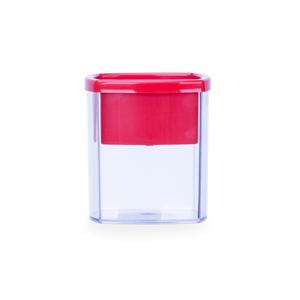 Descrição: Porta-Caneta plástico com porta clips. "Copo" plástico resistente com parte interna colorida removível, tem duas separações para canetas e separação designada para clips.