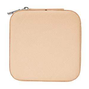 Descrição: Porta-joias de couro sintético com revestimento aveludado. Possui compartimentos internos para anéis, brincos, pulseiras e colares.