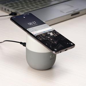 Descrição: Posso deixar a playlist tocando enquanto carrego o smartphone? Com esta caixinha, você pode! Para desfrutar do carregamento por indução (sem fio) é fundamental que o celular possua a tecnologia QI – desta maneira é possível carregar o celular p