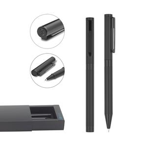 Descrição: O Autograph é um conjunto sofisticado de esferográfica e roller. O roller é em metal com acabamento preto mate e tampa com clipe em aço inox e a esferográfica é em metal, com acabamento preto mate e clipe em aço inox. Neste minimalista e requin