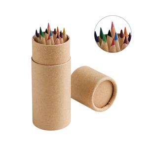Caixa cilíndrica em cartão com 12 lápis de cor