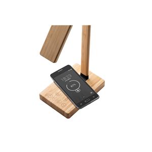 Descrição: Luminária de mesa dobrável em bambu com carregador wireless super rápido, com 16 LEDS brancos e 9 amarelos. O carregador sem fios é de carregamento super rápido, tendo uma potência máxima de 15W. Incluso cabo de carregamento USB-C de 1 metro. F