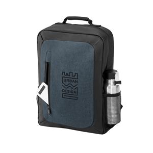 Descrição: Mochila para notebook em 600D de alta densidade e 600D com revestimento resistente à água. Compartimento principal almofadado com divisória para notebook até 15.6''. Bolso frontal com zíper e dois bolsos laterais em tela mesh. Parte posterior a