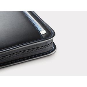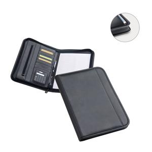 Pasta A4 em csintético com bolso frontal e fecho com folhas pautadas