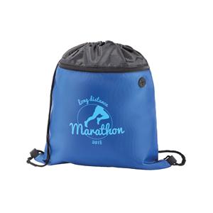 Descrição: Sacola tipo mochila em 210D com bolso frontal com zíper e saída para Fone de Ouvido ou outros fios ou cabos.