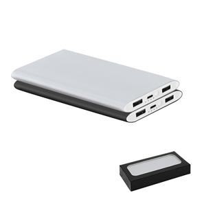Descrição: Bateria portátil em alumínio 100% reciclado. Bateria de lítio com capacidade de 7.200 mAh e tempo de vida ≥ 500 ciclos. Com porta de entrada USB-C e 2 portas USB-A de saída. Incluso cabo USB-A / USB-C para carregar a bateria. Fornecida em caixa